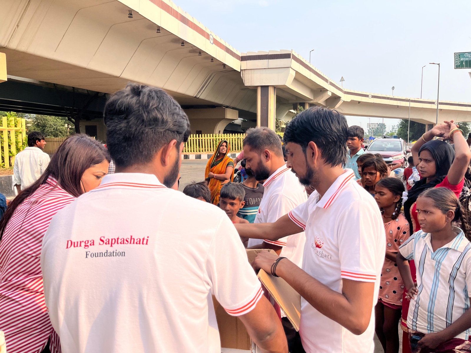 Durga Saptashati Foundation had personally visited the flood affected areas of Delhi, & had distributed the collected Ration & clothes to those in dire need. This Campaign- being the most significant of all campaigns was a result of tireless efforts by the Team, who was much supported by Dr. Amrita Luthra, as she had brought together numerous compassionate contributors in one whatsupp group. Shirdi Sai Baba Temple, Sector 22 had also played a vital role towards the collection for flood affected people.